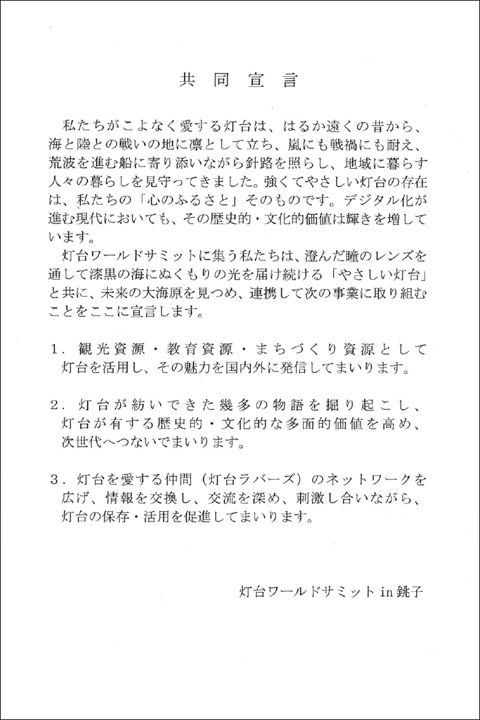 | 名称 | 犬吠埼灯台150周年記念 灯台ワールドサミットin銚子 |